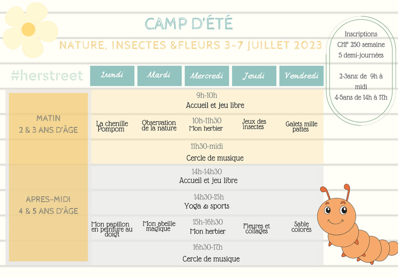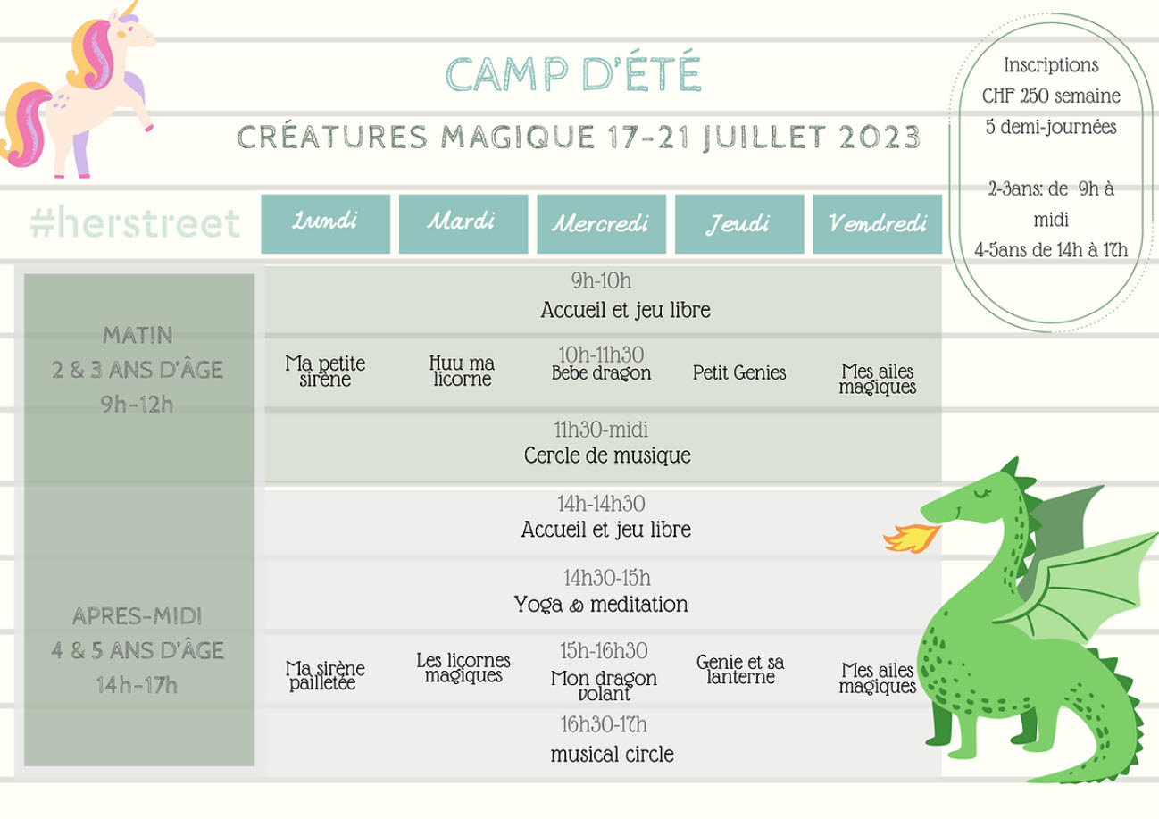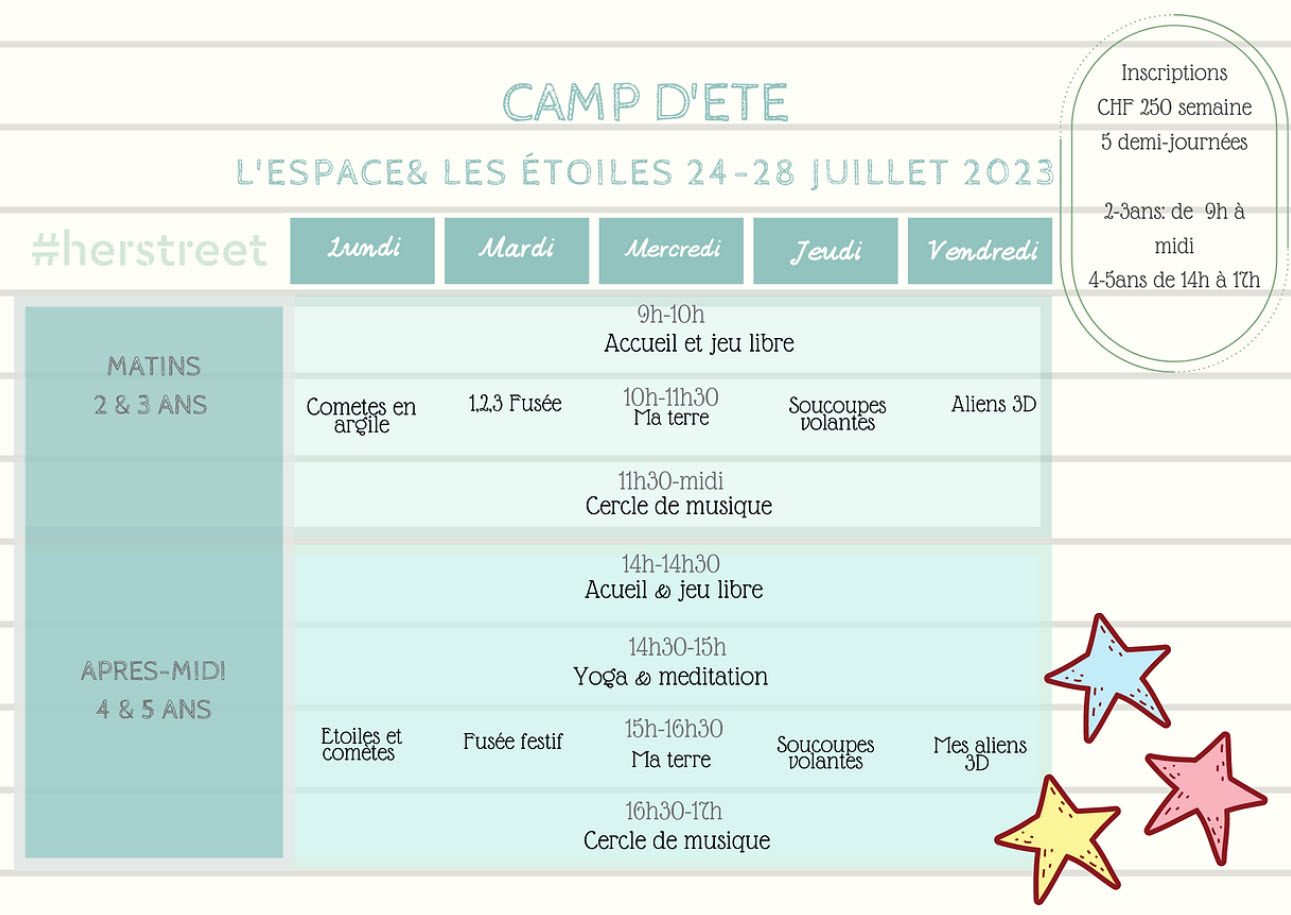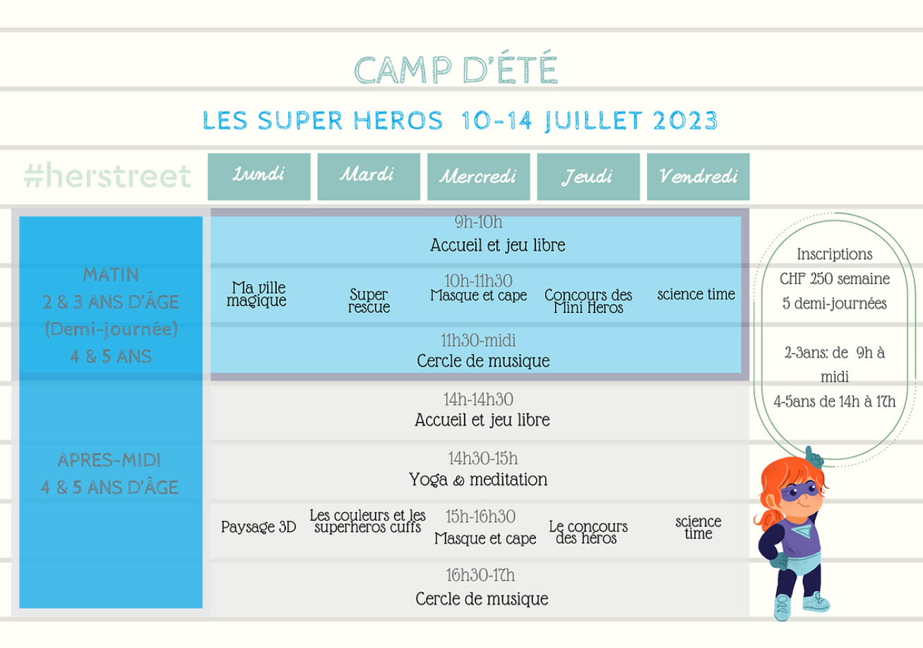 Herstreet est un espace urbain dédié à l’entrepreneuriat féminin et aux mamans, avec des locations d’espaces pour des cours, des évènements, des activités… Chaque été des camps sont organisés pour les petits, avec une prise en charge à la demi-journée. Vos enfants pourront ainsi, en fonction de leur groupe d’âge, découvrir le yoga, la musique, faire des loisirs créatifs sur le thème de la semaine…